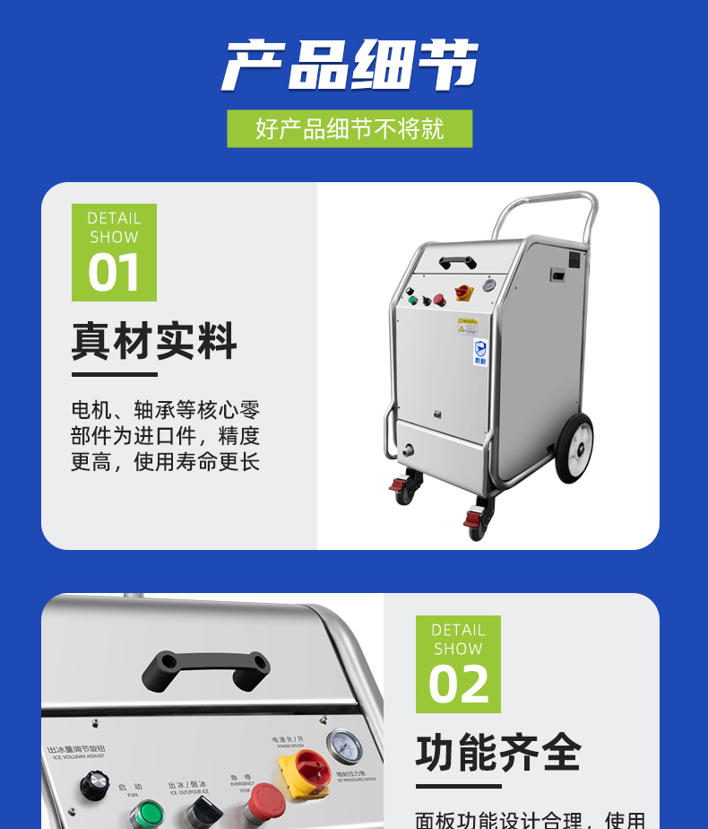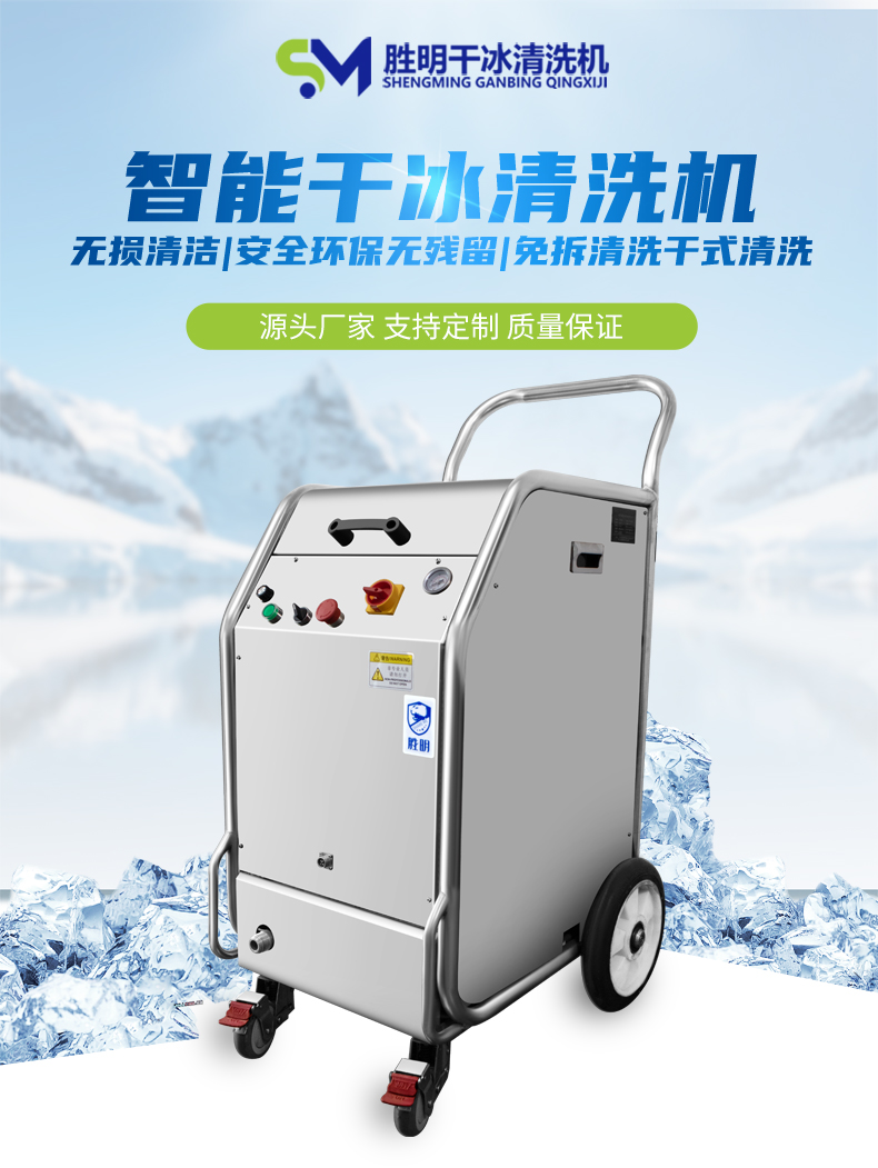 干冰清洗主要的設備是一臺干冰清洗機和一臺空壓機,就可以對產品或者設備進行清洗作業,操作也相對而言比較簡便
